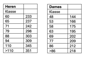 | Senior Men | Normen 15 jaar | Normen 16 jaar | Normen 17 jaar | Normen 18 jaar | Normen 19 jaar | Normen 20 jaar | Normen 21 jaar | Normen 22 jaar | Normen ≥23 jaar | ||